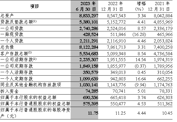 注:(1)根據財政部《關于修訂印發2018年度金融企業財務報表格式的通知》(財會〔2018〕36號),基于實際利率法計提的金融工具利息應包含在相應金融工具的賬面余額中。自2018年起,本集團已按照上述通知要求編制財務報表。為便于分析,“貸款及墊款總額”“客戶存款總額”不含相關應計利息。