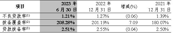 (2)撥備覆蓋率=貸款及墊款減值準備余額(不含應計利息減值準備)/不良貸款余額。