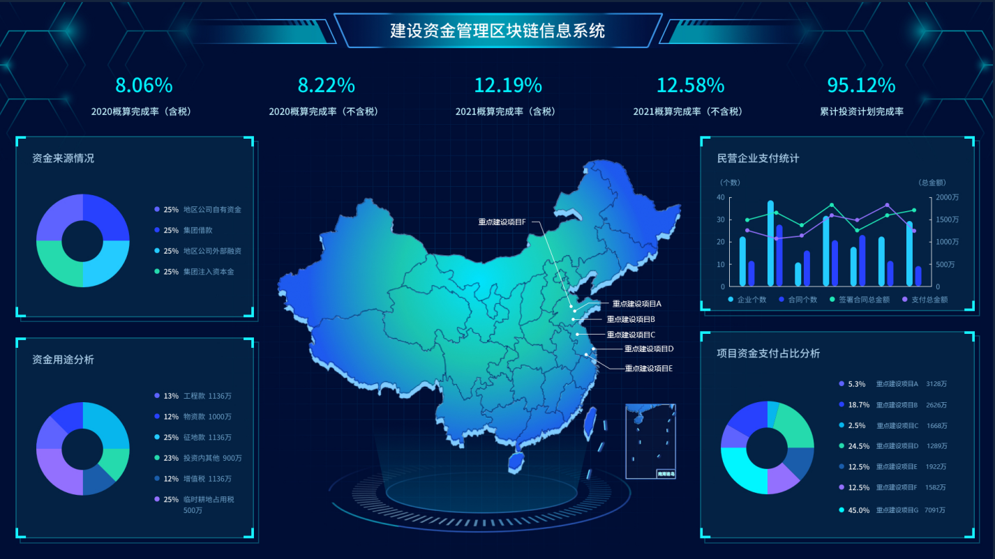 我行依托自主研發的區塊鏈底層平臺及快捷協作云平臺,以"場景+產品+技術"的增值服務產品研發模式,創新性地將區塊鏈技術應用到建設項目資金監管領域。利用區塊鏈技術可溯源、不可篡改等特性及業界首創的資金多層級"穿透支付"支付體系,將"分層隔斷、霧里看花"的項目施工鏈條"擺上臺面",有效填補了建筑施工項目資金事中管理的相對"空白",以快捷協作云平臺企業級模型與組件庫的快捷交付能力,滿足工程建設單位千家千面使用場景的定制研發需求,做到系統"易操作、可落地、能推廣"。