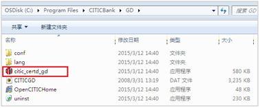 ① 請打開USBKEY管理工具,路徑如下:C:\Program Files\CITICBank\GD\ citic_certd_gd.exe,如圖4所示: