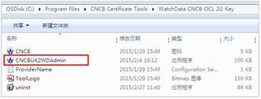 ① 請打開USBKEY管理工具,點擊開始,選擇“開始→所有程序→中信銀行網上銀行證書工具軟件→握奇二代UKEY→管理工具”,或者路徑如下:C:\Program Files\CNCB Certificate Tools\WatchData CNCB OCL 2G Key\CNCBUK2WDAdmin.exe,如圖7所示: