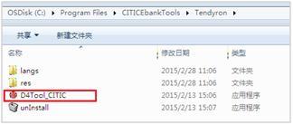 ① 請打開USBKEY管理工具,點擊開始,選擇“開始→所有程序→中信銀行網銀客戶端軟件→天地融→客戶端管理工具”,或者路徑如下:C:\Program Files\CITICEbankTools\Tendyron\ D4Tool_CITIC.exe,如圖12所示: