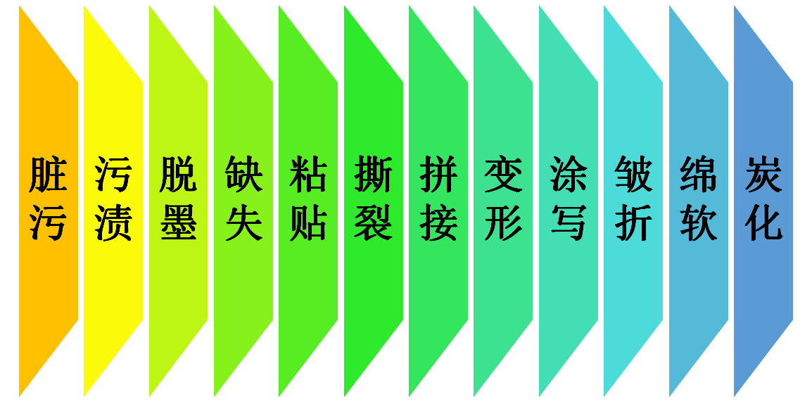 票面出現(xiàn)多處撕裂,最短撕裂長度大于 3mm,累計撕裂長度大于 9mm 的。