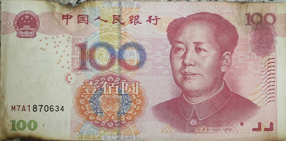 票面出現(xiàn)貫穿紙幣的明顯折痕,折痕處紙質變軟、起毛的。