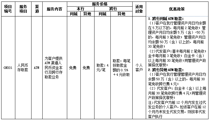 因業務發展需要,我行自2018年4月1日起調整人民幣存取款服務收費項目,根據《商業銀行服務價格管理辦法》(中國銀監會 國家發展改革委令2014年第1號)規定,現將調整后的服務項目及價格予以公示: