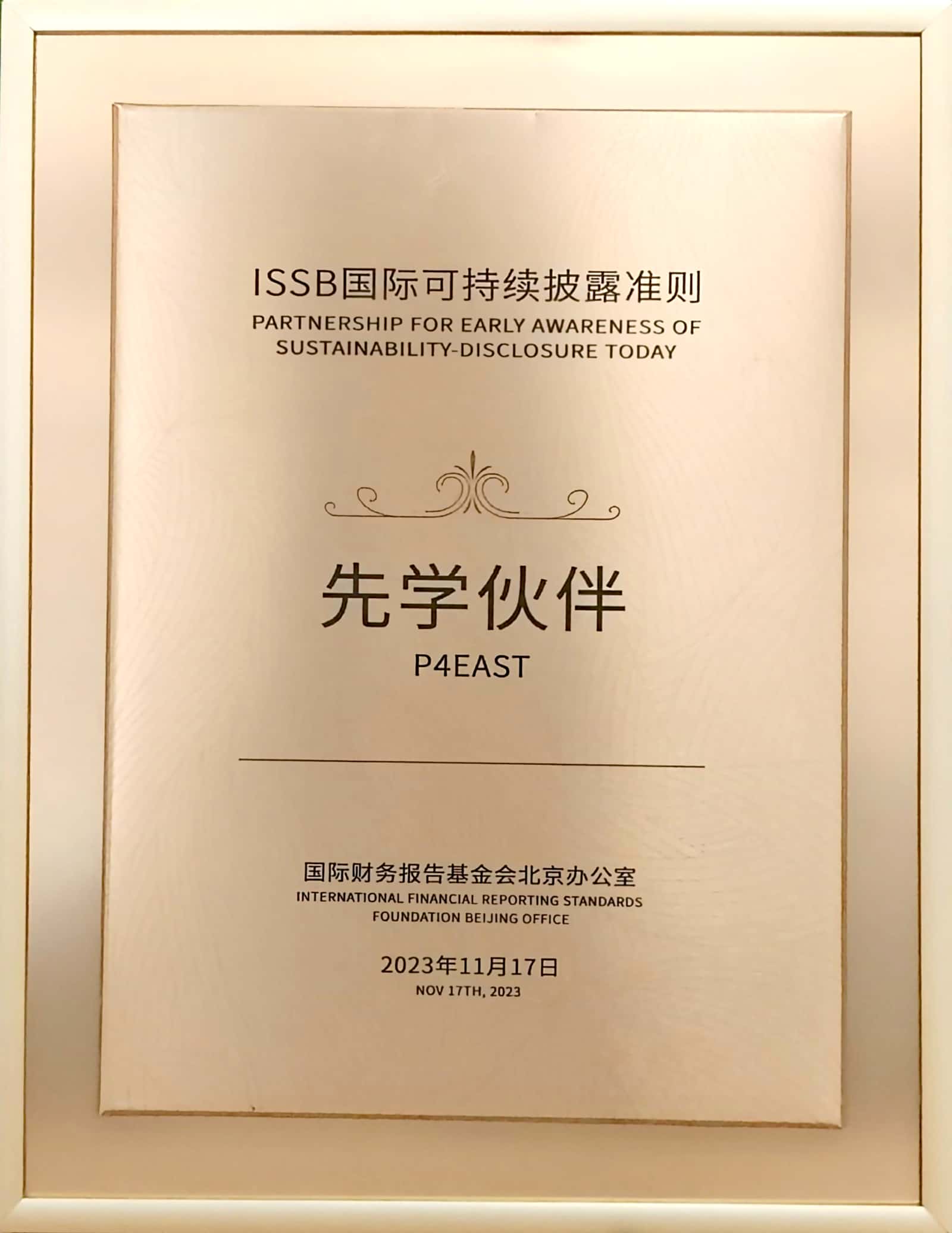 會上,ISSB北京辦公室舉行了“可持續披露準則先學伙伴”授予儀式,宣布了包含中信銀行在內的多家企業正式成為“ISSB先學伙伴”并頒發紀念獎牌。作為首批支持IFRS可持續信息披露準則的企業,中信銀行積極履行國有金融企業政治責任、經濟責任和社會責任,積極推動環境、社會和治理(ESG)良好實踐,以金融力量助力經濟社會高質量發展,促進社會福利總體提升。