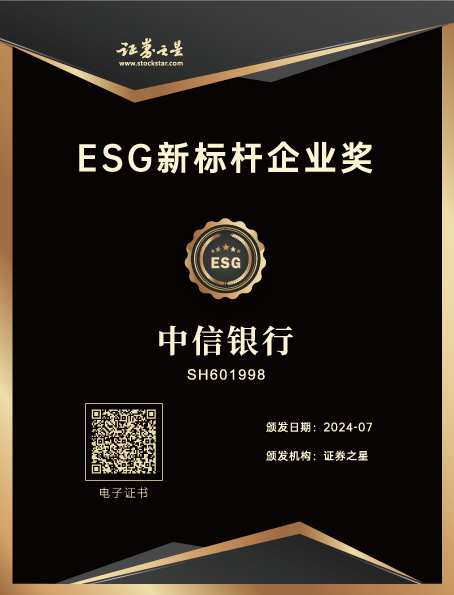 中信銀行榮獲證券之星ESG新標桿企業(yè)獎。
