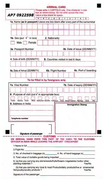截止2017年2月,外國人出境印度時,不需要額外填寫出境卡。