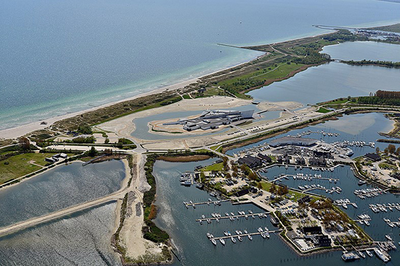 Island與剛剛的三座島嶼有所不同,因為這是一座人造的島嶼,它完全就是因藝術而生的一座小島,ARKEN Museum of Modern Art 最初的想法是設置在沙灘上,以一條擱淺船舶做為靈感,而因為養護的關系還是將其建立在內陸,而以人造島的概念,將美術館被圍繞在潟湖之中,打造有著故事性的現代藝術建筑,航海主題也在內部延伸,厚重的鐵門,鉚釘狀的螺栓和金屬樓梯都為這沉船營造氣氛。對了,千萬不要錯過ARKEN咖啡館。