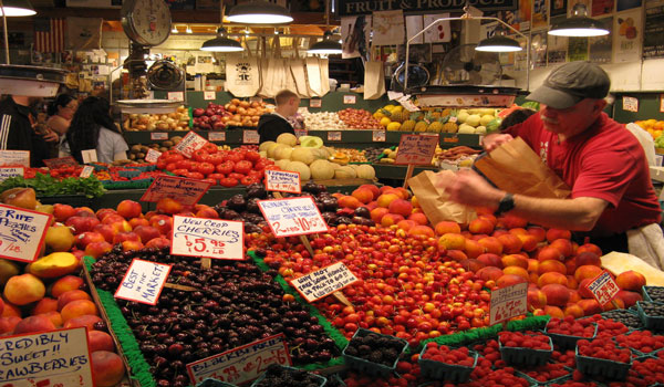 派克市場(Pike Market)始建于1907年,原本是一個(gè)農(nóng)夫市場。如今,農(nóng)民和魚販只是構(gòu)成這里吸引力的一小部分,在這里可以找到二百多家商店,供應(yīng)各類生鮮蔬果,以及各地風(fēng)俗的手工藝品;另外充滿異國情調(diào)的餐廳,亦沿街林立。