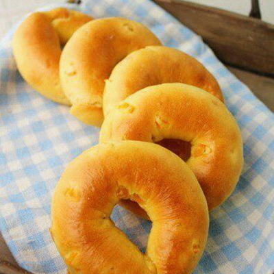 百吉餅(Bagel)是美國紐約最流行的面包,有點像炸面包圈,但炸面圈是油炸的面包,而硬面包圈則是將經(jīng)過發(fā)酵的面粉團,揉成圈形后,放到水里去煮過,然后再進行烘烤。外皮烤得越硬脆,里面的面包味道就越濃,質(zhì)地就越韌,在臺灣叫做“貝果面包”。許多百吉餅中還加有其他的食品成分,例如洋蔥、芝麻和葡萄干等,還有的是用黑麥面做成的。通常把百吉餅從中部切開后分成兩片,然后用小的面包片烘烤機烘烤1分鐘左右,吃時在上面抹一些黃油、果醬或其他調(diào)味品。百吉餅最大的特色就是在烘烤之前先用沸水將成形的面團略煮過,經(jīng)過這道步驟后的百吉餅就產(chǎn)生一種特殊的韌性和風(fēng)味。