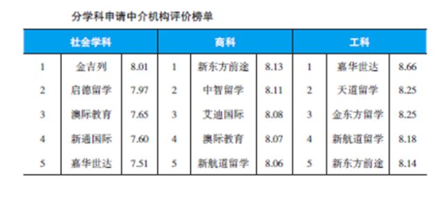 三、《2018出國(guó)留學(xué)藍(lán)皮書》留學(xué)中介分學(xué)科榜單