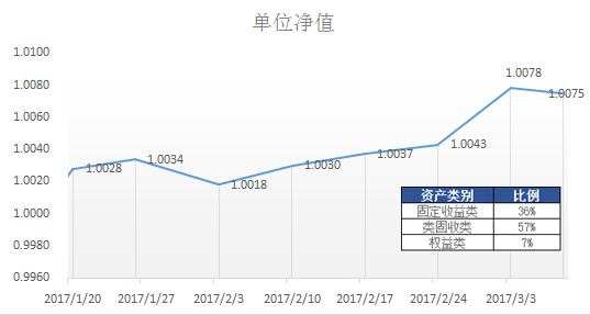 | 睿贏成長月開1期凈值型理財產(chǎn)品 | B170D0005 | 2017/3/8 | 1.0075 | 5.4655% | 5.4655% |