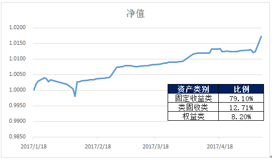 | 睿贏成長月開1期凈值型理財產品 | B170D0005 | 2017/5/8 | 1.0172 |