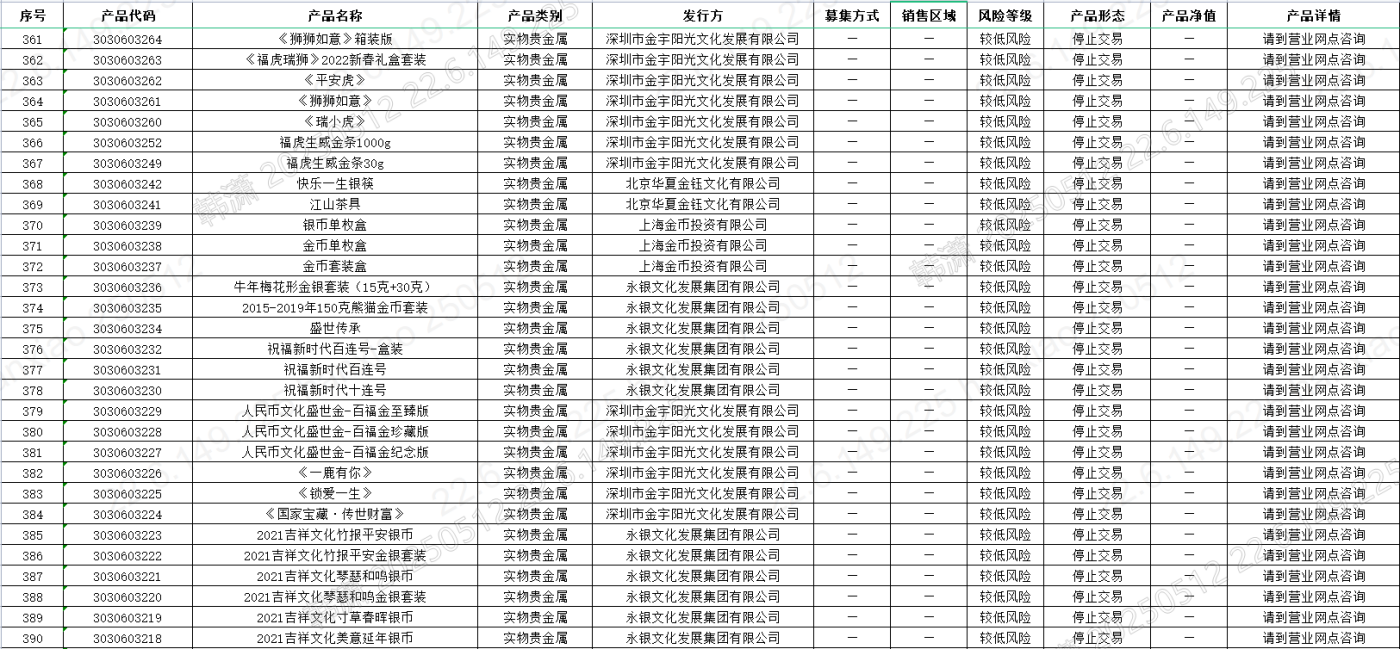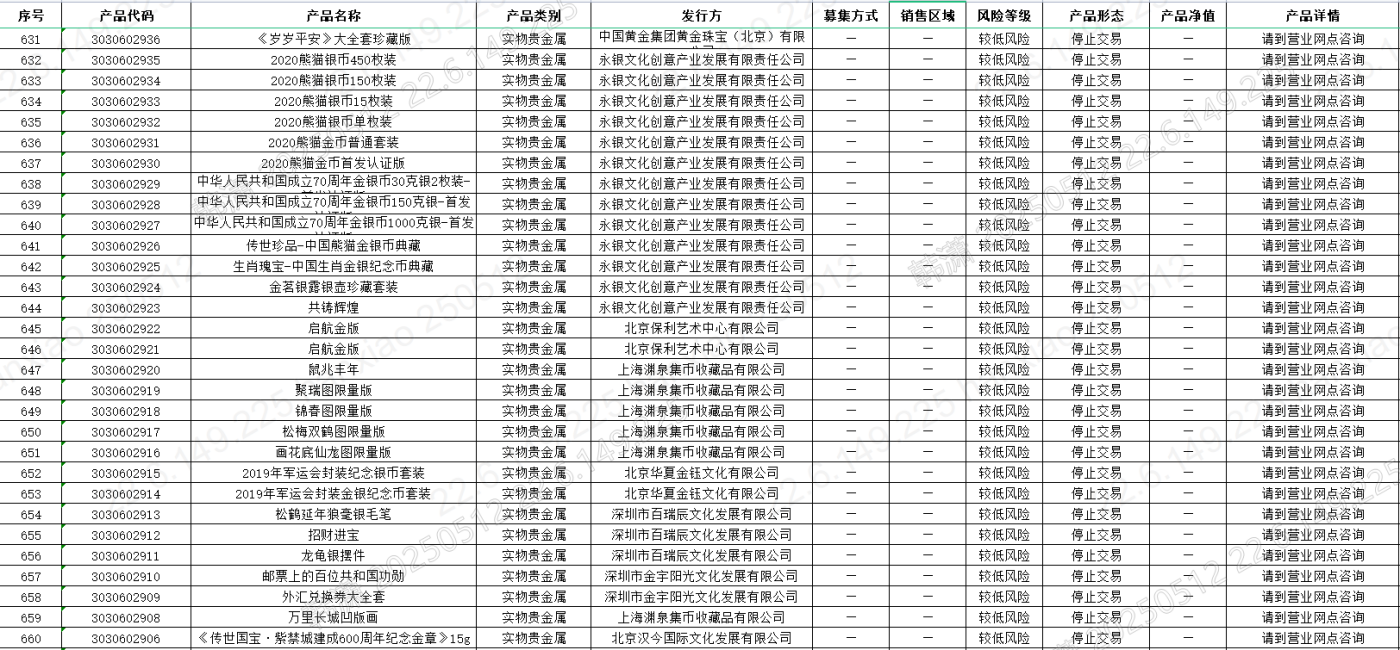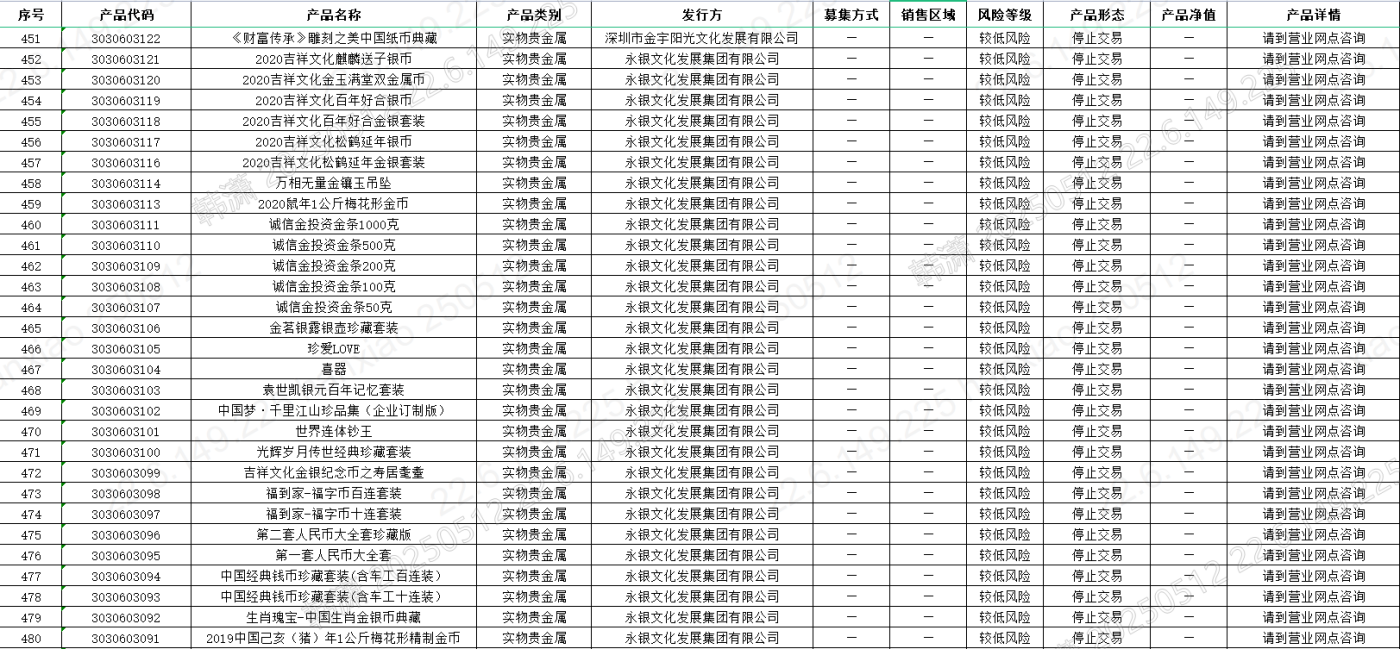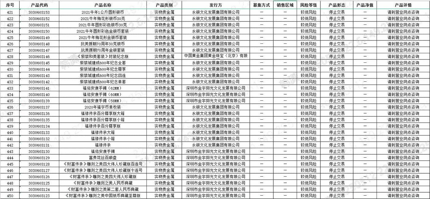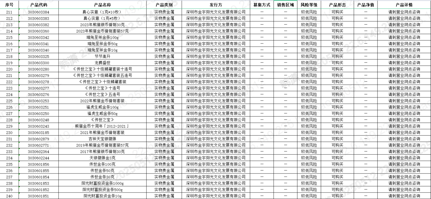 | 序號 | 產品代碼 | 產品名稱 | 產品類別 | 發行方 | 募集方式 | 銷售區域 | 風險等級 | 產品狀態 | 產品凈值 | 凈值日期 | 產品詳情 | 產品簡介 | 購買信息 | 客群類別 |