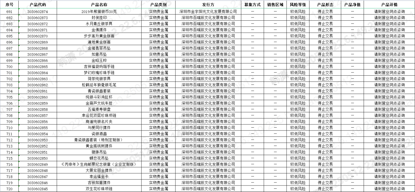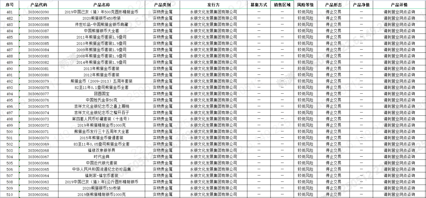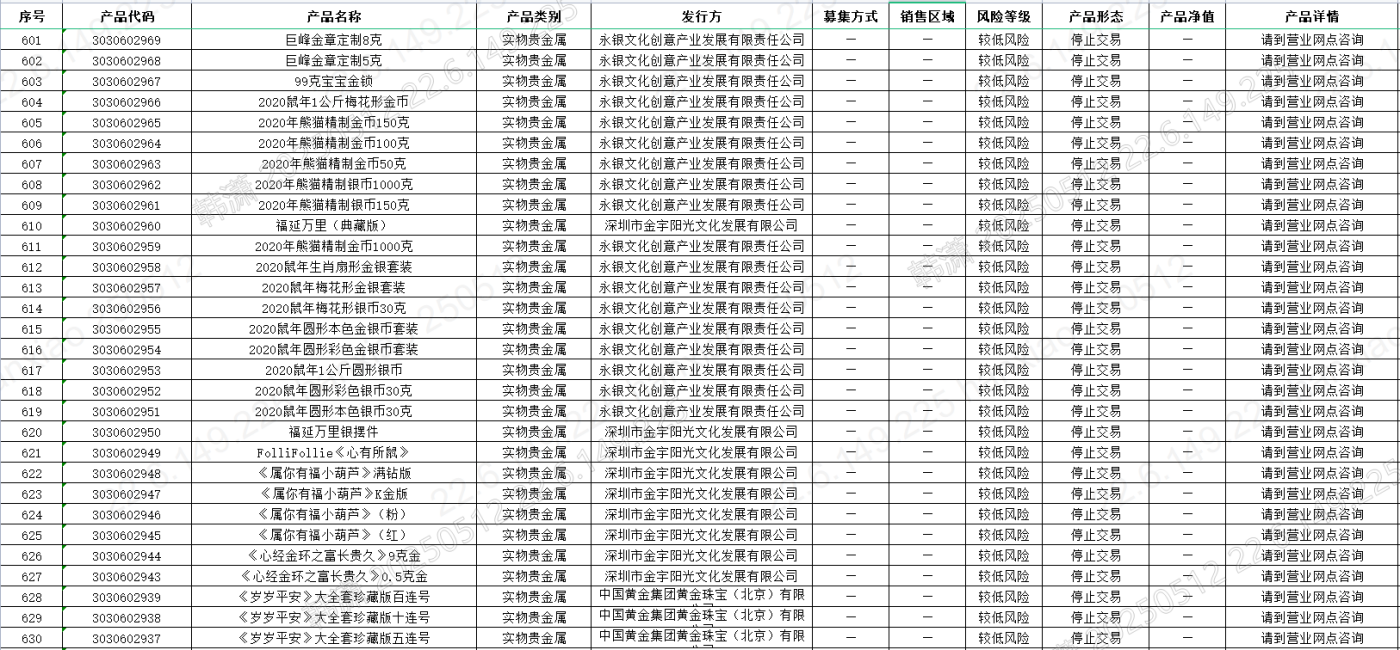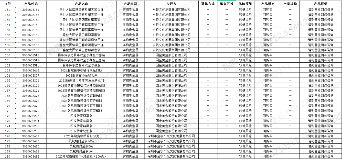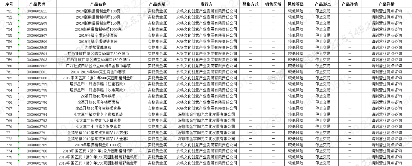 | 序號 | 產品代碼 | 產品名稱 | 產品類別 | 發行方 | 募集方式 | 銷售區域 | 風險等級 | 產品狀態 | 產品凈值 | 凈值日期 | 產品詳情 | 產品簡介 | 購買信息 | 客群類別 |